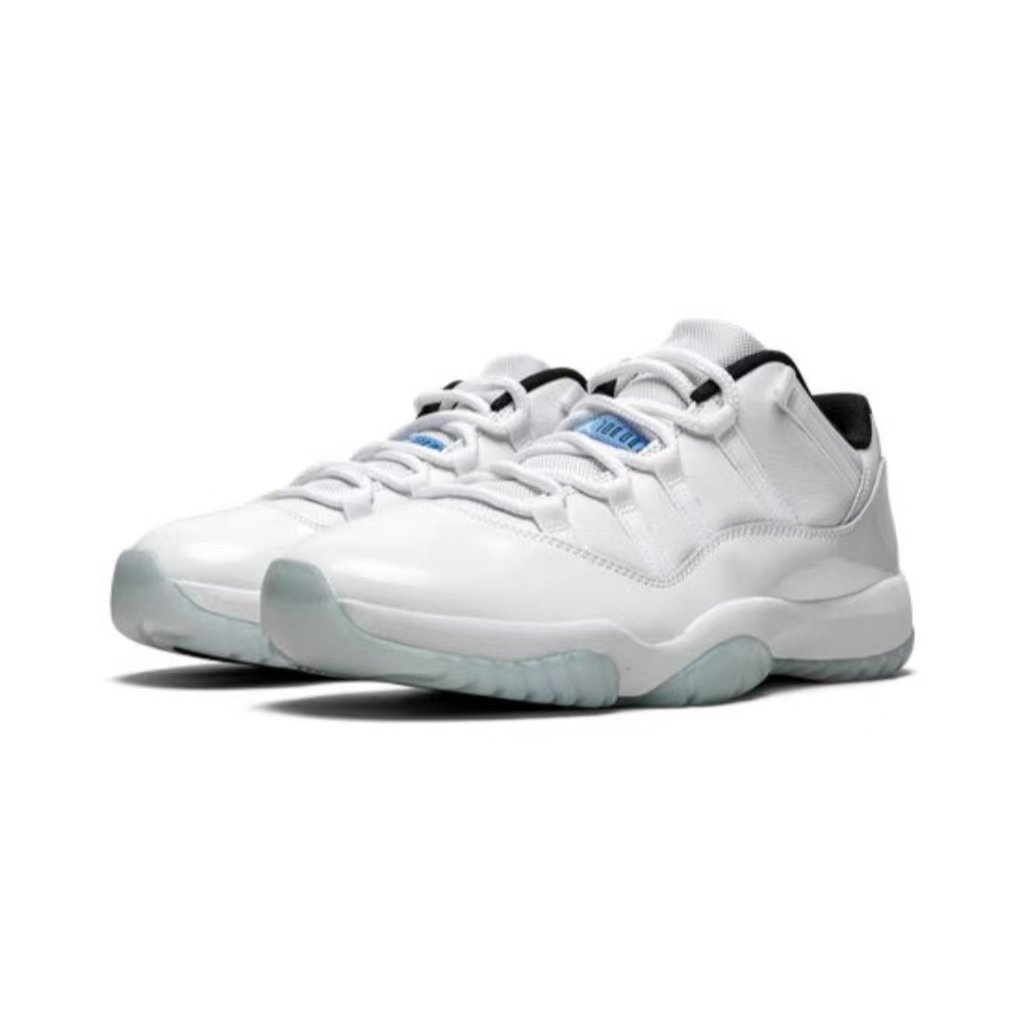 The Air Jordans 11 Low “Legend Blue” is based on an original colorway of Michael Jordans’s timeless eleventh signature shoe. Originally known as the “Columbia” Jordans 11 when it was released and worn by Michael Jordans in 1996, the crisp white-and-light-blue colorway is actually a “UNC” inspired design, sans any official naming by Nike or Jordans. In 2014, the “Columbia” was repackaged as the “Legend Blue,” though the design shares many similarities with the OG look. Here, this Spring 2021 version of the “Legend Blue” is dressed in crisp white leather with a white patent leather mudguard. A white mesh tongue, with Legend Blue “Jumpman Jordans” insignia contrasts the look of the black liner. Of note, the familiar “23” branding on the insole has been switched to “25,” a possible reference to the 2021 being the 25th anniversary of the original “Columbia” release. An icy blue semi-translucent outsole completes the look. Release date: May 7